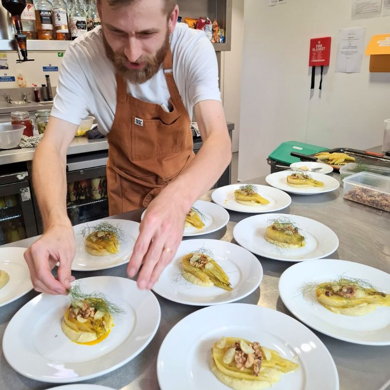 After the workshop, everyone gathered for The Feast, a four-course lunch created by Michelin-trained chef Rowen Halstead. Known for his zero-waste cooking and innovative use of seasonal ingredients, Rowen showcased fermentation as a star element of fine, sustainable dining.